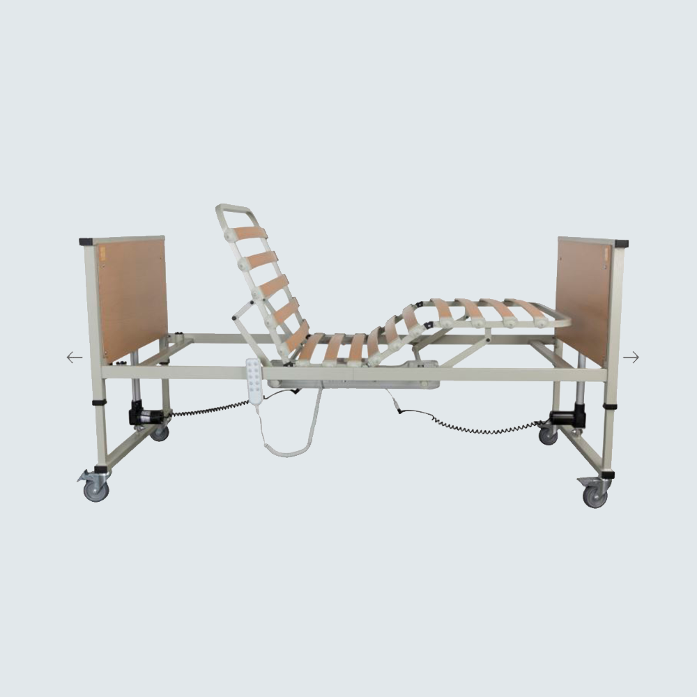 Camilla eléctrica de tres secciones con respaldo articulado y ruedas escamoteables