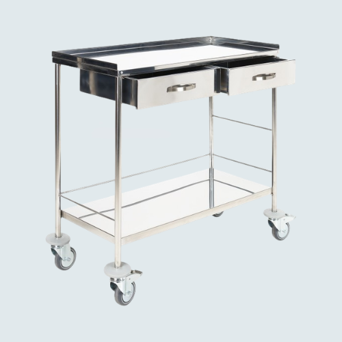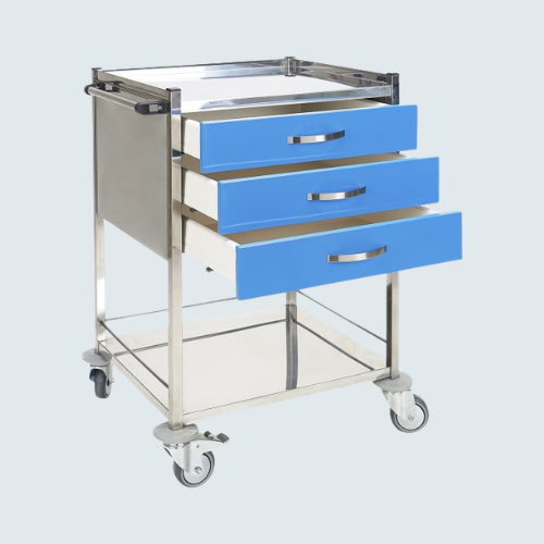 Carro multifunción hospitalario en acero inoxidable con 3 cajones
