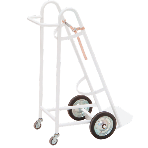 Carro portabotellas de oxígeno medicinal de 140 mm estructura de acero y correa de sujeción