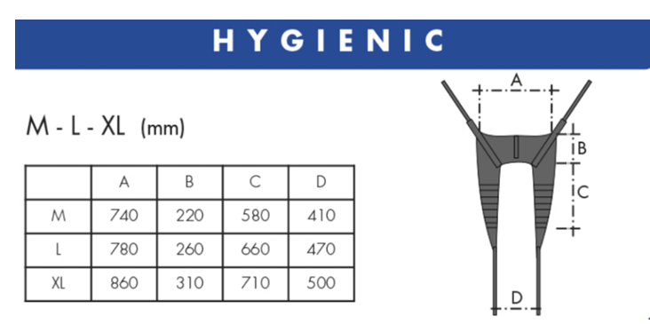 El arnés Hygienic para grúas de elevación está diseñado para ofrecer máximo confort, seguridad y soporte durante las transferencias de pacientes. Su estructura envolvente proporciona un excelente apoyo de la parte superior del cuerpo, permitiendo realizar elevaciones seguras desde la cama, la silla o el baño.