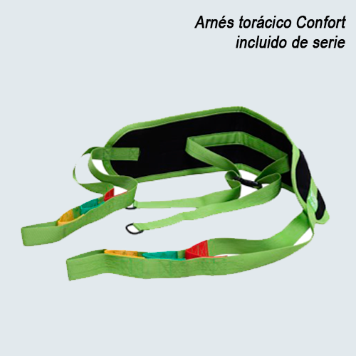 Arnés torácico incluido (otros modelos de arneses opcionales disponibles).